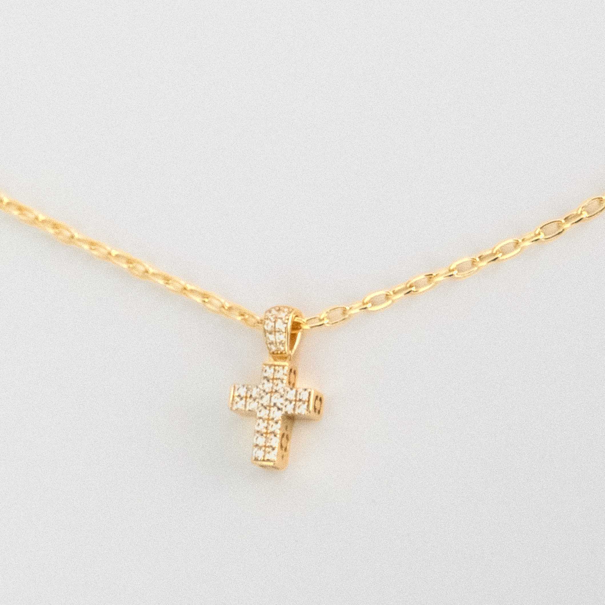 A layering staple made better with the help of Moma's Eye, the Chiara Cross necklace features a pave cross on a chunky chain. This is the kind of necklace that you'll never want to take off.