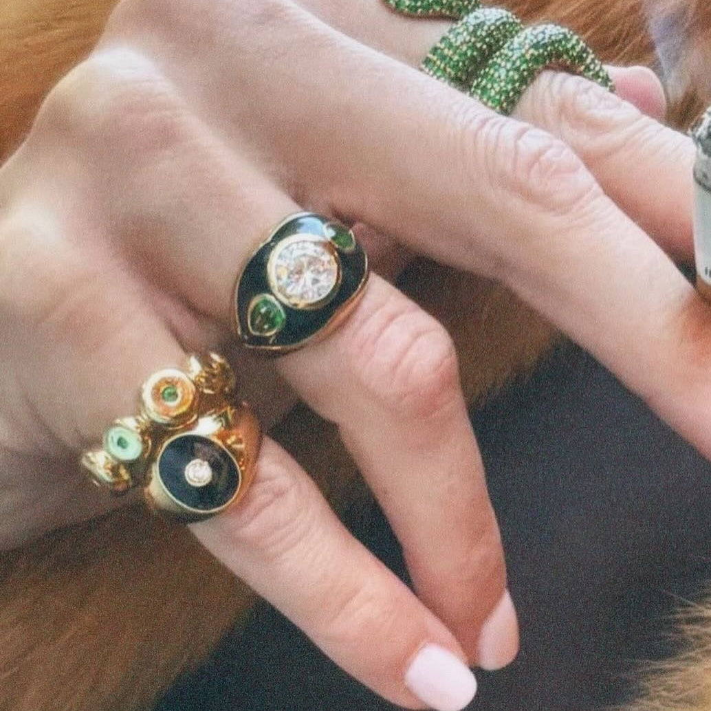 The Luna Nera Pinky Ring is your new everyday signet ring. A delicate zirconia is set on a black enamel face, making it an understated statement piece.